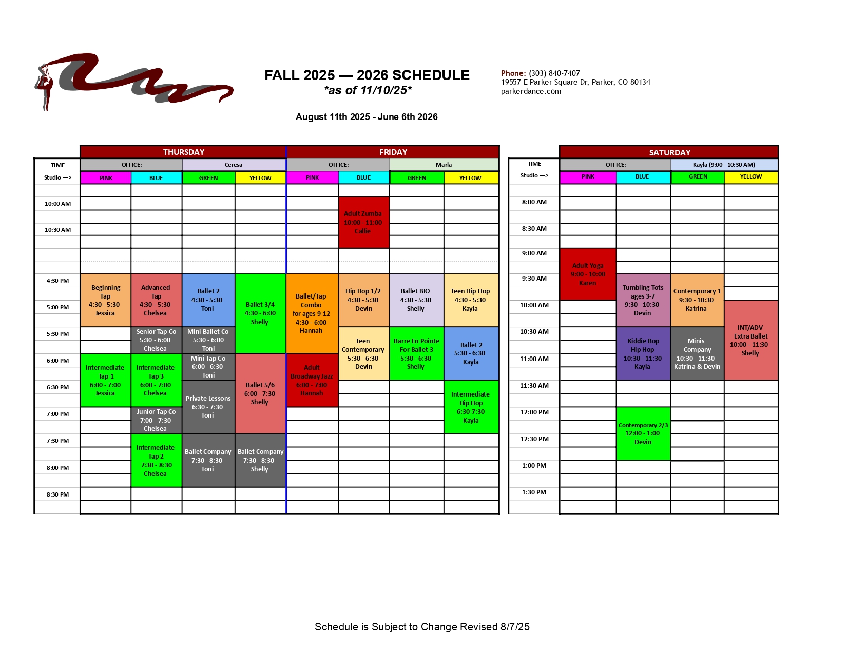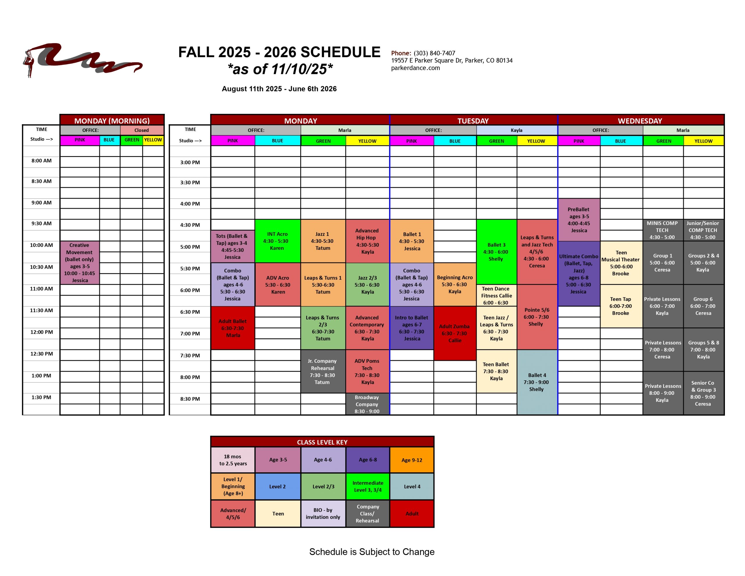 Find the classes for your dancer by their age as of September 30th. Classes run through mid June.