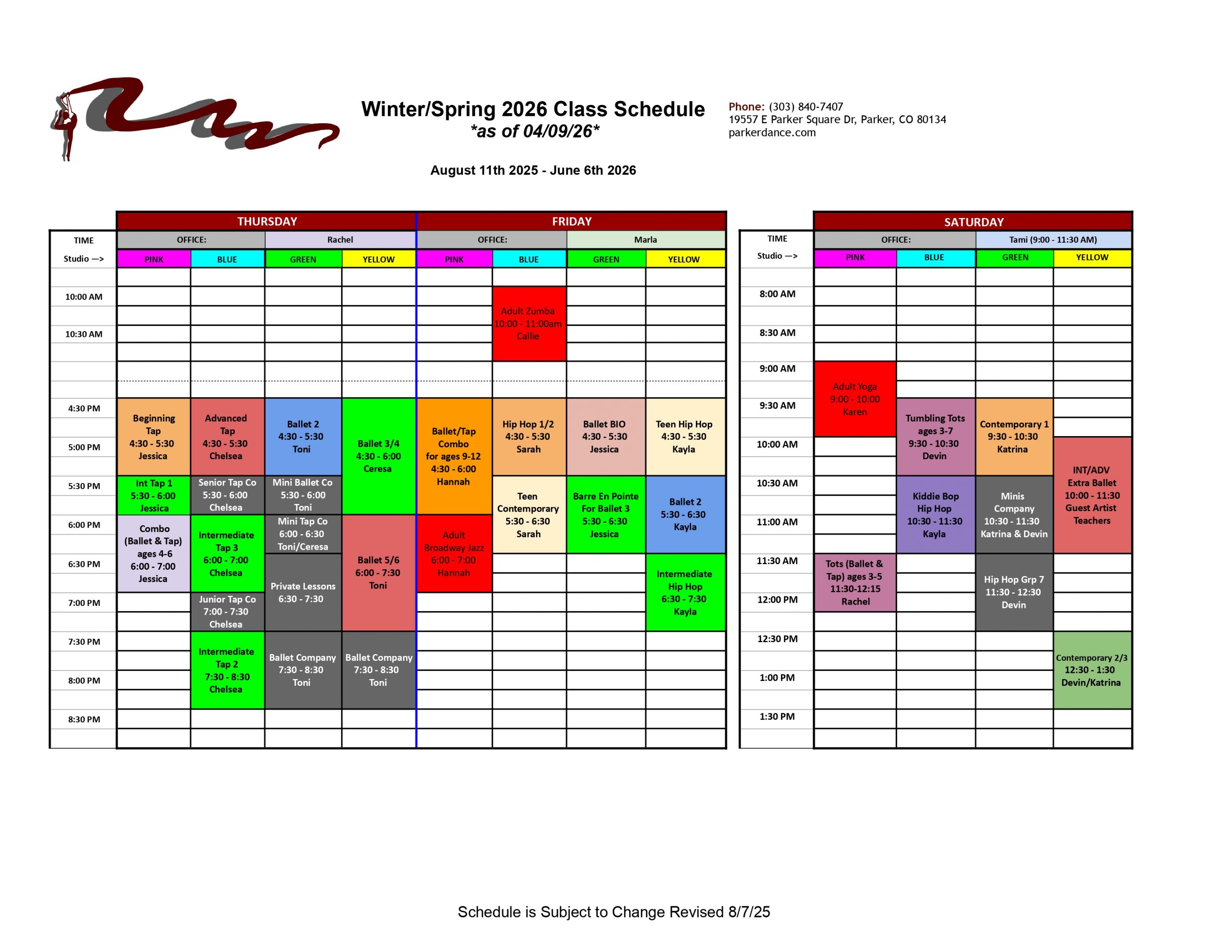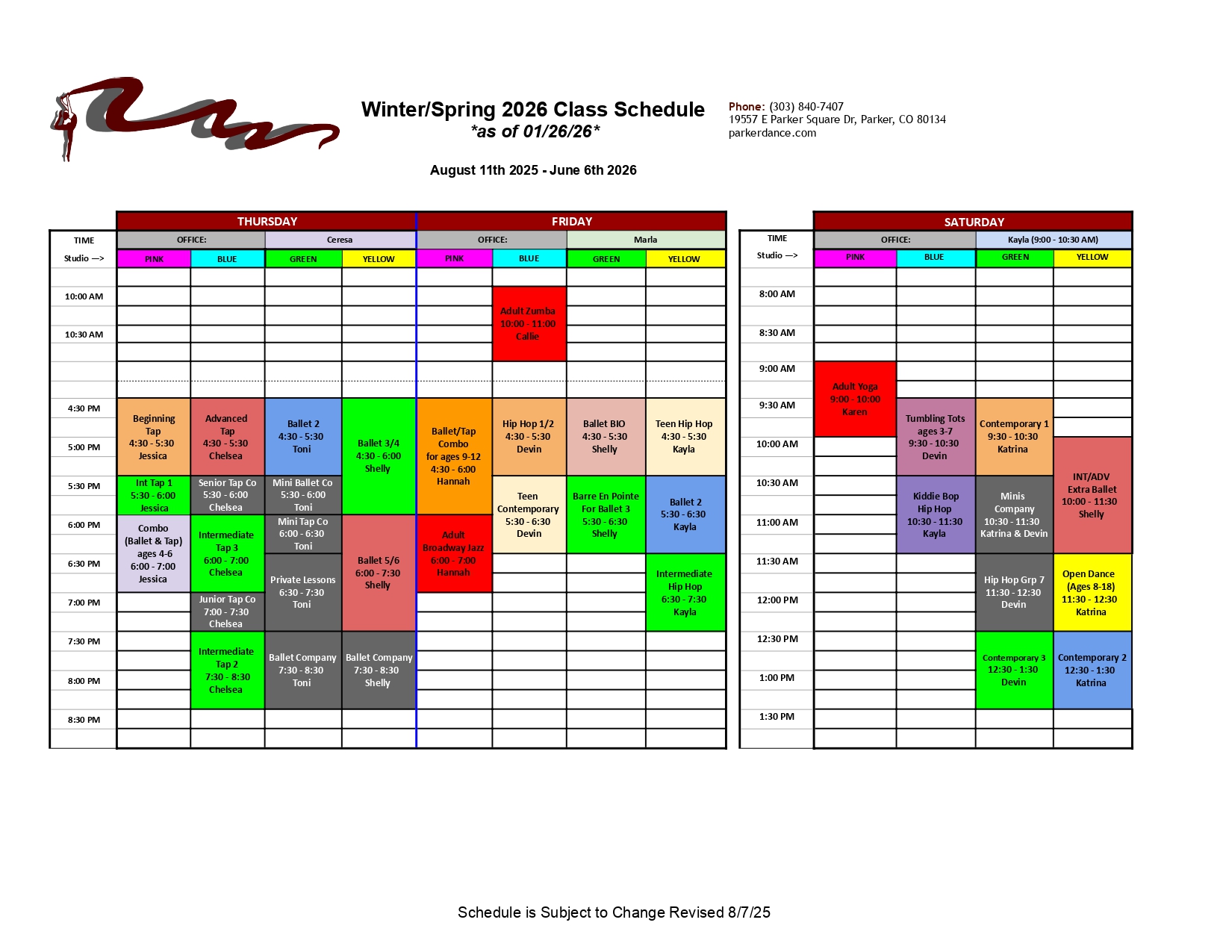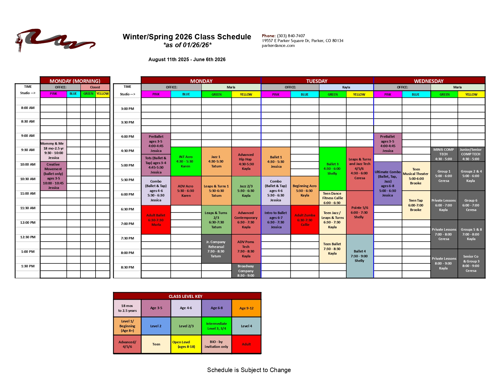 and Thursday (Ballet 3 /4) 4:30 – 6:00 PM