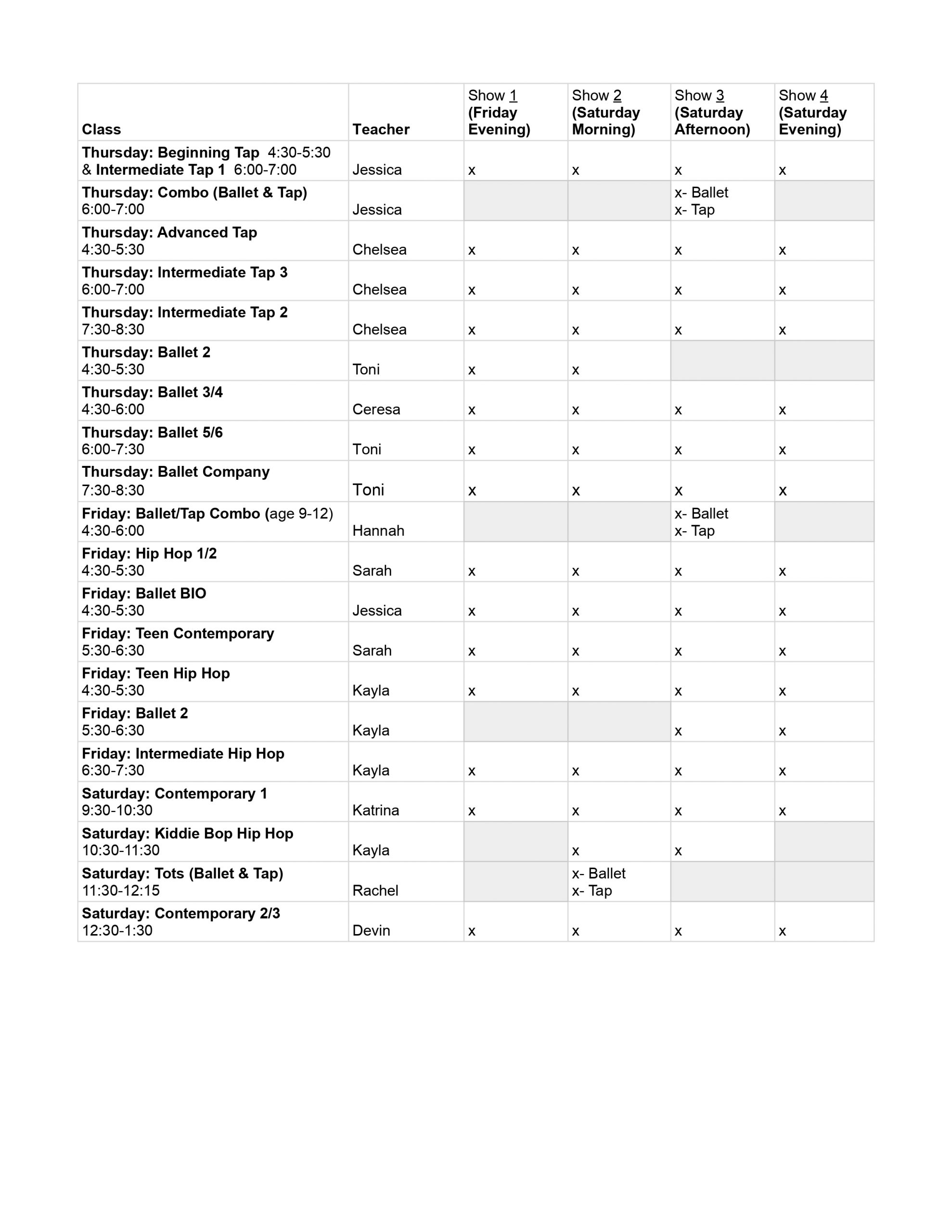 One of the things that sets Parker Dance apart from other dance studios is the way we put together our end of the year performance. These performances encompass a broad range of dance styles and levels within the framework of theatre. We use storytelling, backdrops, acting and costumes combined with carefully selected music to create a classic story, brought to life with dance as the primary component. This not only makes for an entertaining show, but also joins each class and student together to create a complete story. Instead of just being a separate group with no relationship to other groups, classes and students become an important part of the success of each performance. We believe this makes for the most positive and exciting performing experience possible!